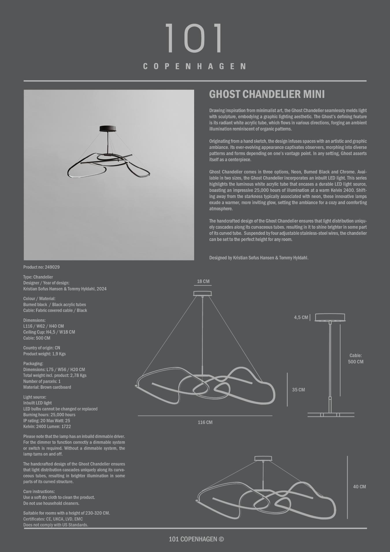 101CPH Ghost Chandelier Mini rippvalgusti, must